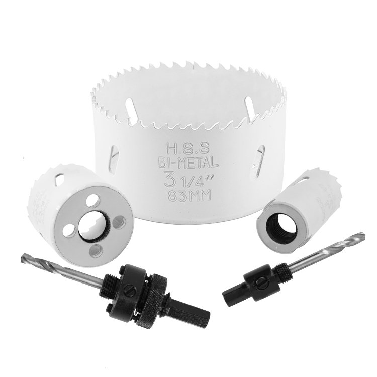1. High Speed Steel teeth electron welded to a high Carbon steel body ensuring maxium durability and a long working life. 2. 4/6 variable pitch tooth design with improved chip clearance and lower feed pressure required with varying gullet depth. 3. Less heat build up ensures the teeth stay sharp longer. 4. Faster and more aggressive cutting performance. Using a cooling lubricant will extend the life of your hole saw by 500% 5. Bimetal Hole Saws with HSS teeth are rugged cutting tools designed to cut accurate holes in machinable materials up to 38mm thick. 6. Ranging in size from 14mm to 210mm in diameter, that can be used in portable electric tools, air tools, drill press, lathes, boring mills, milling machines and some other machines, which have rotating spindles. 7. The HSS teeth of our Bimetal hole saws are recommended for cutting steel, cast iron pipe, steel plates, aluminium, copper, brass, stainless steel, wood and plastic. 8. 14mm to 30mm diameter hole saw with 1/2-20UNF threaded connecting; 32mm to 210mm diameter hole saw with 5/8-18UNF threaded connecting. |