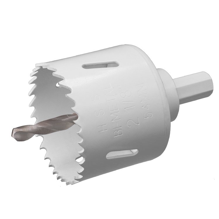1. High speed Steel teeth electron welded to a high Carbon steel body ensuring maxium durability and a long working life. 2. 4/6 variable pitch tooth design with improved chip clearance and lower feed pressure required with varying gullet depth. 3. Built in Arbor for heavy duty use on metal, wood or plastic. 4. Less heat build up ensures the teeth stay sharp longer. 5. Faster and more aggressive cutting performance. Using a cooling lubricant will extend the life of your hole saw by 500% 6. Bimetal Hole Saws with HSS teeth are rugged cutting tools designed to cut accurate holes in machinable materials up to 38mm thick. 7. Ranging in size from 14mm to 210mm in diameter, that can be used in portable electric tools, air tools, drill press, lathes, boring mills, milling machines and some other machines, which have rotating spindles. 8. The HSS teeth of our Bimetal hole saws are recommended for cutting steel, cast iron pipe, steel plates, aluminium, copper, brass, stainless steel, wood and plastic. 9. 14mm to 30mm diameter hole saw with 1/2-20UNF threaded connecting; 32mm to 210mm diameter hole saw with 5/8-18UNF threaded connecting. |