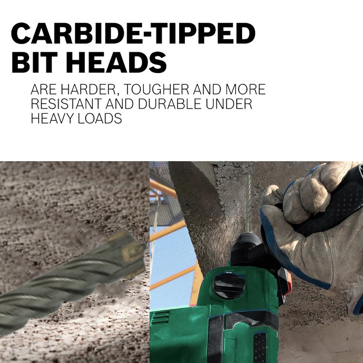Product description:1.Geometrical form of the 4-cutter head prevents jamming and breakage for optimal results. 2.“Turn-angle” head and 4-flute design provide fast dust removal for increased drilling speeds and reduced wear.