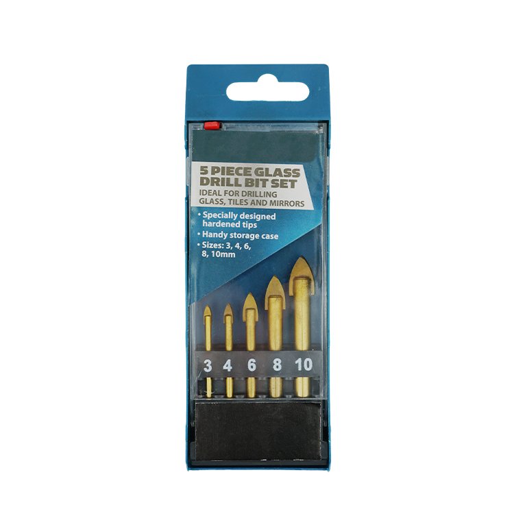 5 Pcs Titanium Coated Hex Shank Cross Tip Glass and Tile Drill Bit Set