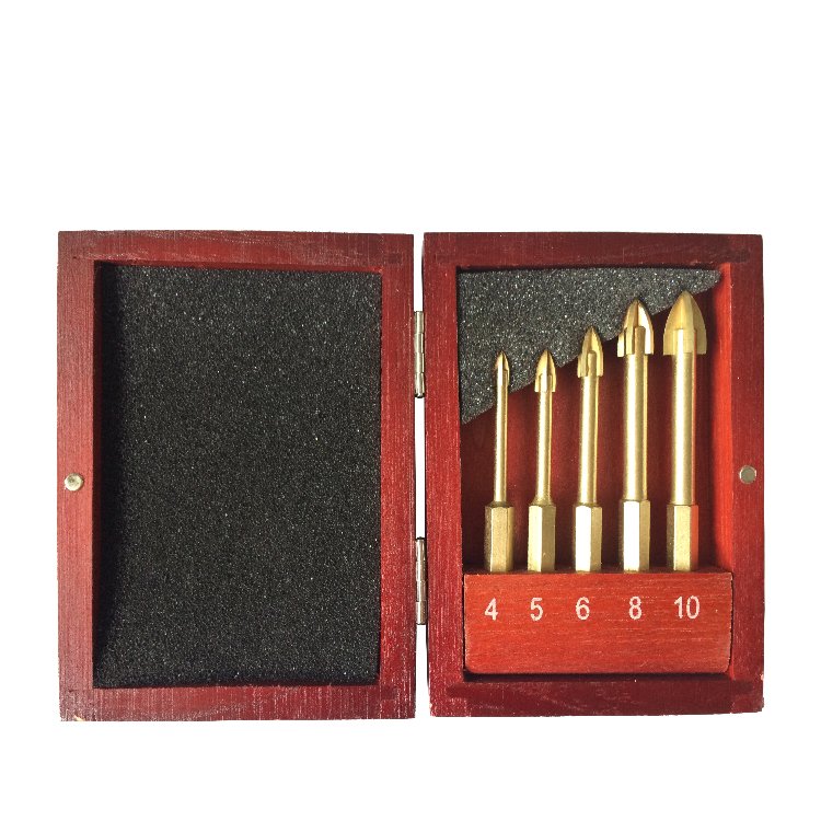 5 Pcs Titanium Coated Hex Shank Cross Carbide Tip Glass and Tile Drill Bit Set