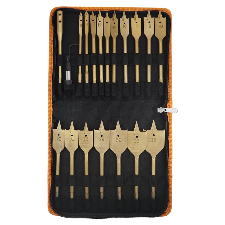 | Product Name | 20Pcs Titanium Coating Hex Shank Tri-Point Flat Wood Spade Drill Bit Set in Canvas Bag |